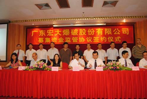 為進(jìn)一步加強(qiáng)公司與銀行的戰(zhàn)略合作以及答謝銀行對(duì)我公司上市工作的支持和幫助,公司于2012年6月29日在亞洲國(guó)際大酒店成功舉辦了“廣東宏大爆破股份有限公司募集資金監(jiān)管協(xié)議簽約儀式暨上市答謝酒會(huì)”。應(yīng)邀出席儀式的有:廣發(fā)行廣州分行、農(nóng)行廣東省分行營(yíng)業(yè)部、工行廣州花城支行、中行廣州海珠支行、浦發(fā)行廣州天譽(yù)支行等五家銀行的領(lǐng)導(dǎo)及相關(guān)人員;廣發(fā)證券的保薦代表人朱煜起女士;廣業(yè)公司資金財(cái)務(wù)部和資金結(jié)算中心有關(guān)領(lǐng)導(dǎo)和人員。公司董事長(zhǎng)兼總經(jīng)理鄭炳旭,黨委書記宗粵琦,常務(wù)副總經(jīng)理王永慶,高級(jí)顧問(wèn)李應(yīng)儒等參加了此次會(huì)議。會(huì)議由公司執(zhí)行總經(jīng)理方健寧主持。