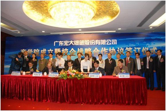 中國工程院汪旭光院士、安徽理工大學顏事龍校長、中南大學校長助理李夕兵教授、資源與環(huán)境學院副院長陳建宏教授、北京理工大學博士生導師張同來教授、南京理工大學化工學院院長劉大斌教授、暨南大學管理學院副院長譚躍教授、中國鐵道科學研究院顧毅成研究員、中國有色工程設計研究院劉殿中教授,廣東省人事廳專技處賀東處長、廣東省經(jīng)信委張漢成副處長,廣業(yè)公司總經(jīng)理助理夏賽秋等領(lǐng)導蒞臨現(xiàn)場,與宏大公司員工一道見證了宏大商學院的成立。汪旭光院士與公司董事長、總經(jīng)理鄭炳旭先生共同揭牌,宣布宏大商學院的正式成立。公司執(zhí)行總經(jīng)理方健寧先生與中南大學、安徽理工大學、南京理工大學、暨南大學四所知名高校在現(xiàn)場簽訂校企戰(zhàn)略合作協(xié)議。