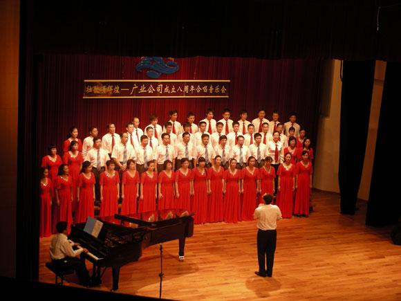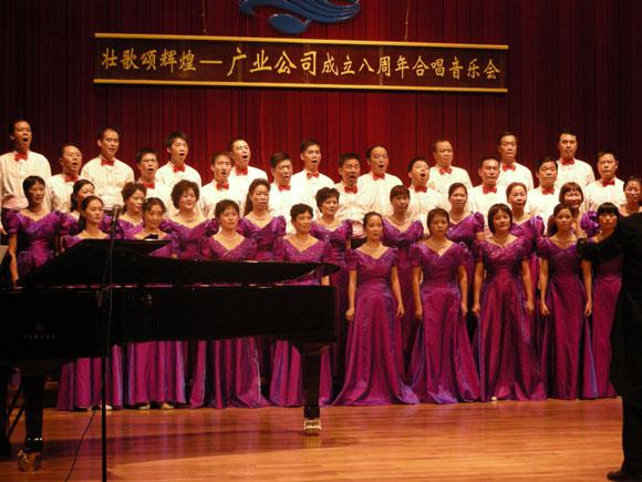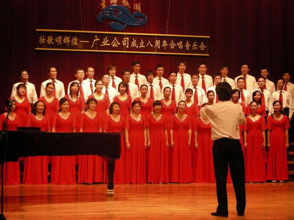 2008年9月23日下午,《壯歌頌輝煌》--廣業(yè)公司成立八周年暨國(guó)慶59周年合唱音樂會(huì)以壯麗的歌聲,以合唱比賽的形式,在金碧輝煌的星海音樂廳順利舉行。廣業(yè)公司領(lǐng)導(dǎo),各一級(jí)企業(yè)領(lǐng)導(dǎo)班子成員及400多名員工,觀看了演出。全系統(tǒng)12個(gè)代表隊(duì)演員人數(shù)近500人紛紛登臺(tái)獻(xiàn)藝,一陣陣嘹亮的歌聲引起了如潮的掌聲,各參賽選手均以自己最美好的歌聲,匯合成大合唱,表達(dá)對(duì)祖國(guó)的無(wú)限祝福和贊美,整個(gè)場(chǎng)面氣勢(shì)恢弘,高潮迭起,演員們聲情并茂的演出,博得了觀眾的陣陣喝彩。