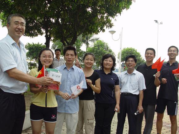 8月8日下午,在北京奧運即將開幕之際,為了表達全體員工對北京奧運的祝福和期盼之情,進一步弘揚奧林匹克精神和公司企業(yè)文化,公司工會在信合大廈一樓廣場開展趣味活動。 活動包括拔河和跳繩比賽,公司全體員工分為6個小組,并按照抽簽結(jié)果參加比賽。在同事的吶喊助威聲中,最終獲得拔河比賽的隊伍為第一小組,獲得跳繩比賽第一名的隊伍為第四小組。 最后,公司常務(wù)副總經(jīng)理王永慶分別為獲獎隊伍頒發(fā)奧運紀念品,活動圓滿結(jié)束。