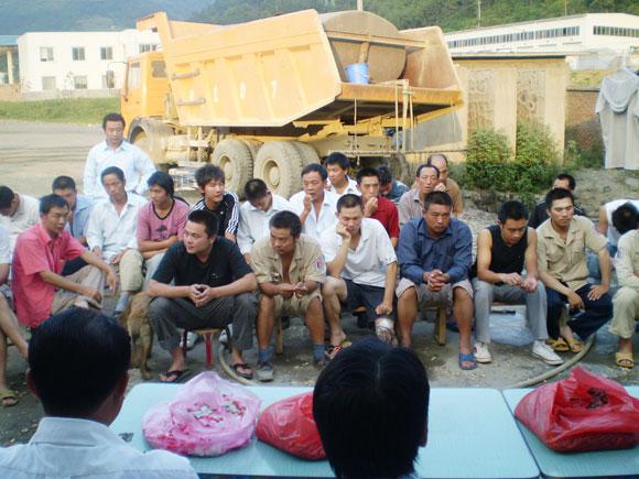 與會的有公司質(zhì)安部副經(jīng)理許漢杰、項目經(jīng)理冉冉、項目安全部長汪德華、挖運隊隊長劉楚洪及挖運隊全體員工;會議內(nèi)容包括了安全、生產(chǎn)、設(shè)備愛護和維護、員工的生活。