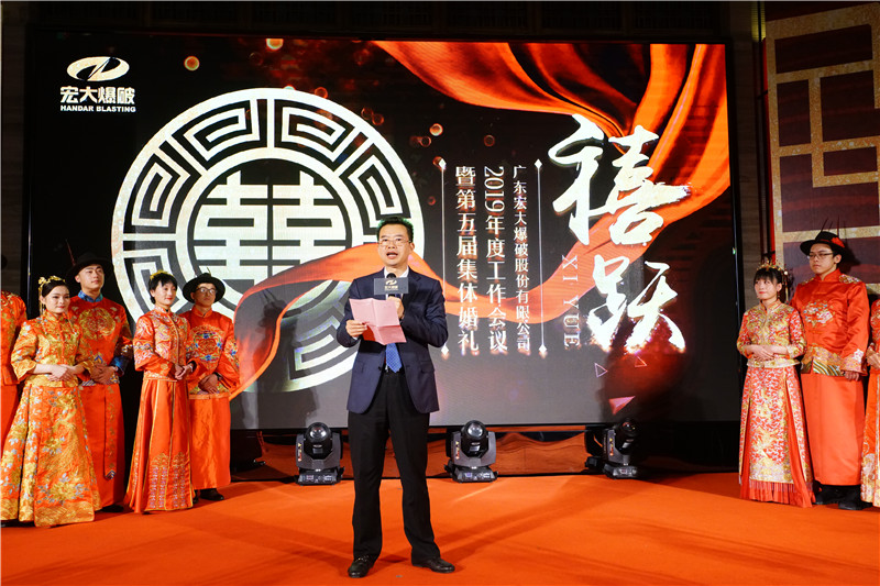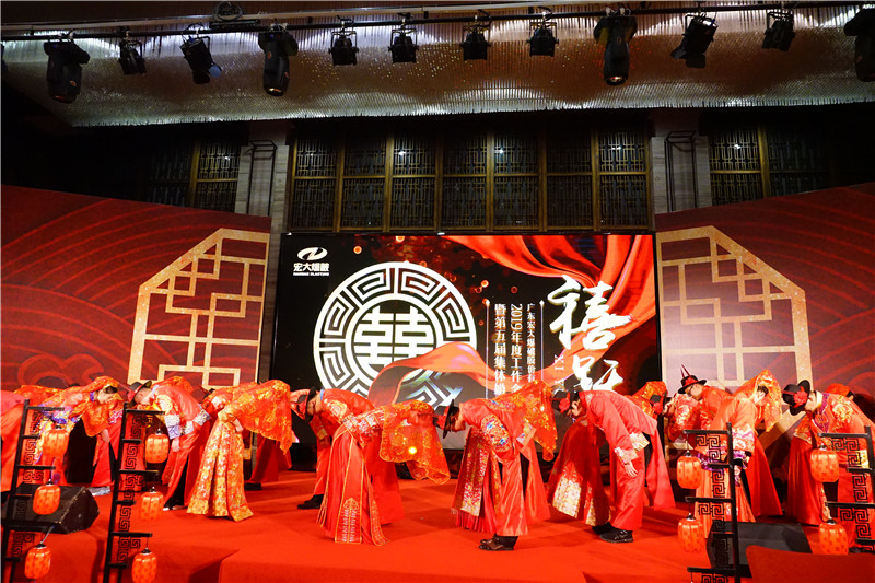 2019年1月16日,農(nóng)歷臘月十一,以“禧躍”為主題的廣東宏大爆破股份有限公司第五屆集體婚禮在廣州珠江畔云山下拉開帷幕。正值公司三十周年之慶逢錦上添花,30位15對(duì)新人身著中式紅色秀禾服,許深情賦予以琴瑟和鳴。云山疊翠、珠水流光,情系于此,這里將是他們愛情鑒證開始的地方。