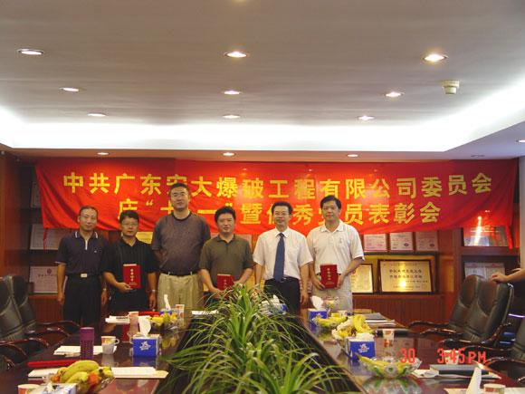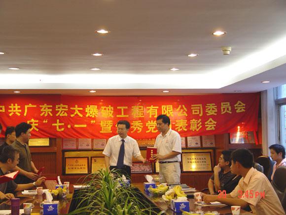 6月30日下午,廣東宏大爆破工程有限公司黨委召開了慶“七一”暨優(yōu)秀黨員表彰會。會議學(xué)習(xí)了黨務(wù)文件(環(huán)保產(chǎn)業(yè)黨[2006]009號和環(huán)保產(chǎn)業(yè)黨[2006]016號)的相關(guān)內(nèi)容,黨委書記鄭炳旭同志要求全體黨員和在職員工要學(xué)習(xí)叢飛同志,弘揚(yáng)“叢飛精神”,并結(jié)合社會主義榮辱觀教育,加強(qiáng)精神文明建設(shè),構(gòu)建和諧宏大。會議還組織觀看了反邪教警示教育電視片,對獲得2005年度優(yōu)秀黨員(宏大爆破第一黨支部:陳飛,宏大爆破第二黨支部:樊運(yùn)學(xué),宏大廣航總部黨支部:賴義純、黃錦雄,宏大廣航浚通二黨支部:徐明,宏大廣航礁炸二黨支部:王進(jìn))進(jìn)行了表彰,大會在熱烈的祝賀聲中結(jié)束。