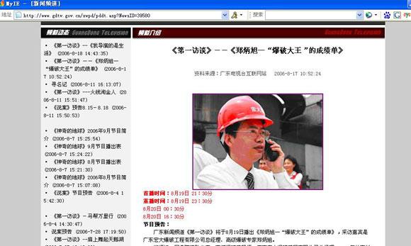近日,廣東新聞?lì)l道采訪了我司總經(jīng)理、高級(jí)爆破專(zhuān)家鄭炳旭,廣東新聞?lì)l道《第一訪談》于8月19日播出了《鄭炳旭—“爆破大王”的成績(jī)單》節(jié)目。