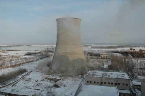 3月10日16時(shí)12分,我司成功對(duì)大唐長山熱電廠已有20年歷史的20萬機(jī)雙曲線冷卻水塔實(shí)施爆破拆除工程,僅用了短短的2秒鐘時(shí)間,冷卻水塔在騰起的煙氣中穩(wěn)穩(wěn)地塌坐下來。至此,該廠20萬機(jī)3500平方米冷卻水塔爆破工作圓滿結(jié)束。