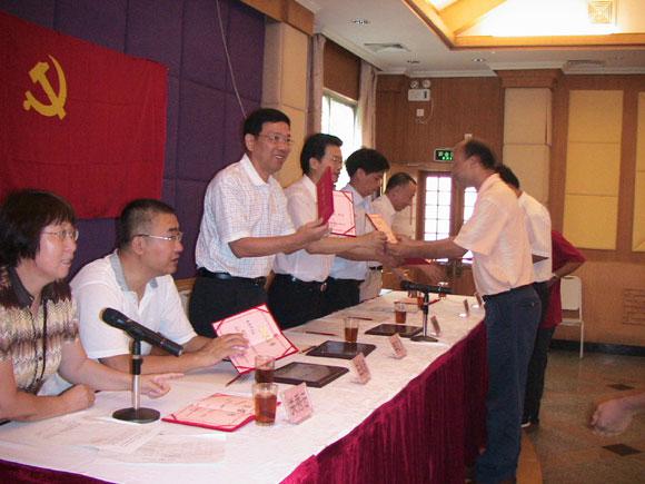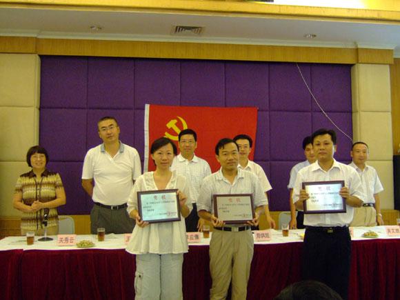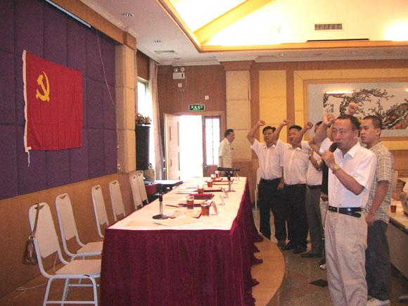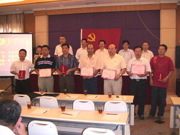 會議的第一項議程為新黨員宣誓。公司黨委委員肖文雄副總經(jīng)理作為領(lǐng)誓人,帶領(lǐng)新黨員在鮮艷的黨旗面前宣讀了入黨誓詞,莊嚴(yán)的宣誓儀式結(jié)束后,公司領(lǐng)導(dǎo)和黨委委員向獲得2006年度優(yōu)秀黨員光榮稱號的黨員(賴景華、方啟華、陳偉、封建社、黃錦雄、歐飛進、林偉平)頒獎并合影留念。黃錦雄同志作為優(yōu)秀黨員代表上臺發(fā)表感言,表示將繼續(xù)努力工作,團結(jié)群眾,永葆黨員的先進本色。