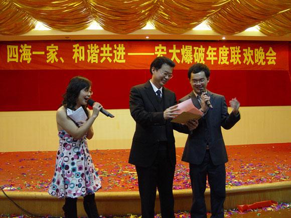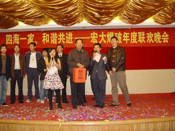 當(dāng)天晚上,“四海一家,和諧共進(jìn)——宏大爆破年度聯(lián)歡晚會(huì)”隆重舉行,來自全國(guó)各地項(xiàng)目部的宏大同仁踴躍參與節(jié)目,載歌載舞,其樂融融,共享喜悅之情。其間,公司領(lǐng)導(dǎo)和嘉賓分別上臺(tái)抽獎(jiǎng),把歡樂帶給現(xiàn)場(chǎng)所有員工。分布在全國(guó)各地的項(xiàng)目部同事還精心錄制了賀年視頻,為宏大公司領(lǐng)導(dǎo)和同仁拜年,充分展現(xiàn)了宏大人的團(tuán)結(jié)精神和凝聚力。晚會(huì)精彩紛呈,既有太極拳表演、合唱、歌舞劇,又有雙簧、小品、快板等,還有妙趣橫生的游戲,晚會(huì)內(nèi)容豐富多彩,博得了現(xiàn)場(chǎng)陣陣掌聲。最后,經(jīng)過各位公司領(lǐng)導(dǎo)和工會(huì)委員的評(píng)選,晚會(huì)評(píng)選出了最佳節(jié)目、最佳創(chuàng)意和最佳人氣三項(xiàng)獎(jiǎng)項(xiàng),獲獎(jiǎng)名單如下:
