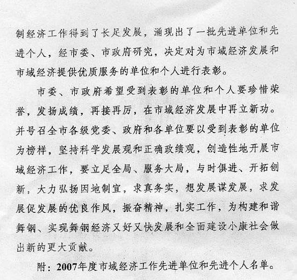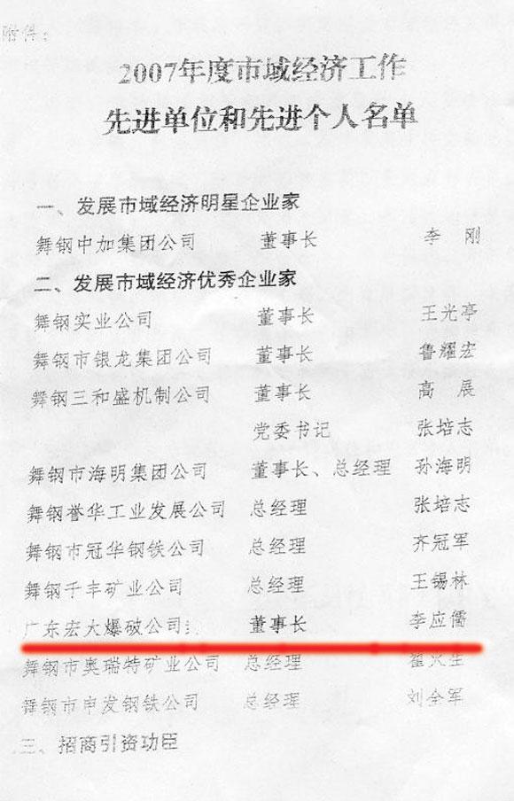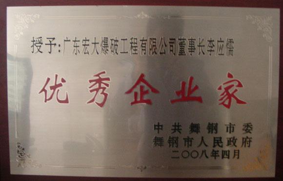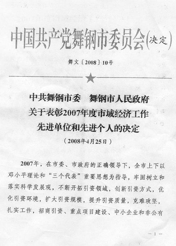 4月25日上午,中共舞鋼市委、市政府在舞鋼市影劇院召開表彰大會,對舞鋼市市域經濟發(fā)展和市域經濟提供優(yōu)質服務單位和個人進行表彰,我司董事長李應儒榮獲 “優(yōu)秀企業(yè)家”光榮稱號,并獲頒發(fā)獎杯和獎金5萬元。這是我司董事長李應儒繼2007年榮獲“明星企業(yè)家”后再次獲此殊榮。