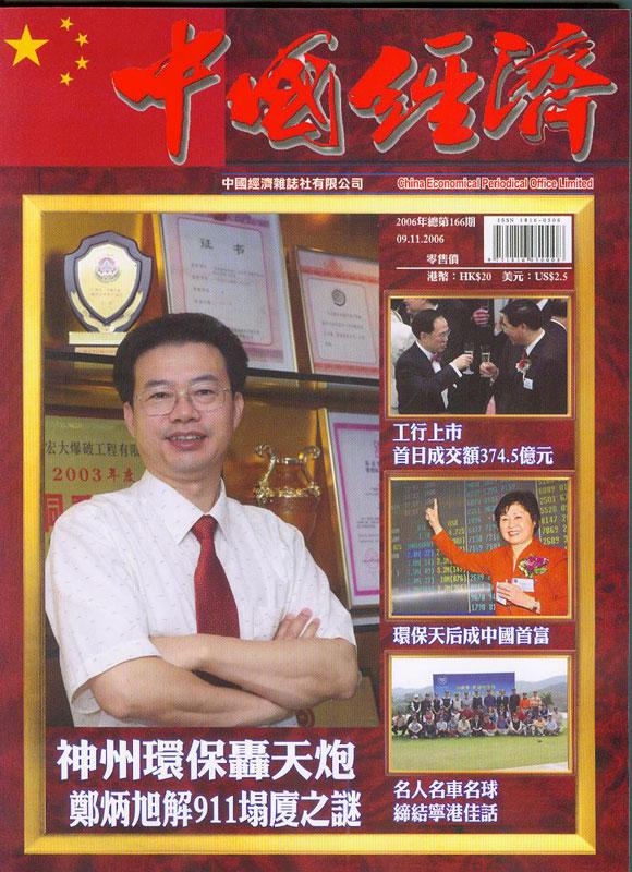 近日出版的香港《中國(guó)經(jīng)濟(jì)》雜志(2006年第11期)以《神州環(huán)保轟天炮》為主題,分八個(gè)版面詳細(xì)報(bào)道了對(duì)鄭總的采訪,內(nèi)容涉及鄭總的人生經(jīng)歷、經(jīng)營(yíng)理念、技術(shù)貢獻(xiàn)以及我司的工程業(yè)績(jī)等,報(bào)道全面、生動(dòng)、客觀,充分展示了鄭總作為國(guó)內(nèi)爆破行業(yè)領(lǐng)軍人物的個(gè)人魅力。