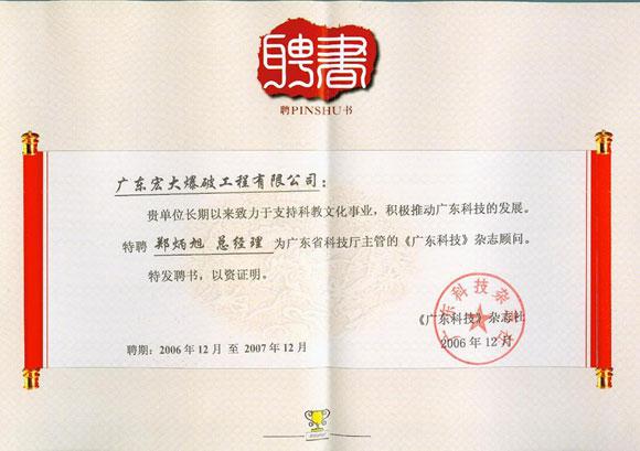 近日,由廣東省科技廳主管的《廣東科技》雜志聘請我司鄭炳旭總經(jīng)理為該刊顧問。聘書中高度評價我司長期以來致力于支持科教文化事業(yè),積極推動廣東科技的發(fā)展。鄭總榮聘該刊顧問,將通過該雜志的輿論力量,不斷增強(qiáng)與社會各界的信息與經(jīng)驗(yàn)交流,樹立我司科技創(chuàng)新型企業(yè)新形象。