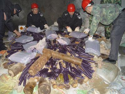 12月16日上午,在廣州市太和鎮(zhèn)某廢棄石場(chǎng)內(nèi),廣州警方成功銷(xiāo)毀了1000余枚廢舊炮彈。這些廢舊炮彈種類(lèi)較多,數(shù)量也大,這是今年從建設(shè)工地、廣鋼廢鋼分揀中心搜集所得,總量達(dá)5噸左右。這次銷(xiāo)毀任務(wù)由廣東宏大爆破工程有限公司承擔(dān),并采用了與以往不同的銷(xiāo)毀方法——硐室爆炸法,它是在垂直于導(dǎo)硐的硐室內(nèi)進(jìn)行,銷(xiāo)毀共使用炸藥144公斤,由廣州市公安局治安管理支隊(duì)三大隊(duì)大隊(duì)長(zhǎng)張小穗下達(dá)起爆命令。