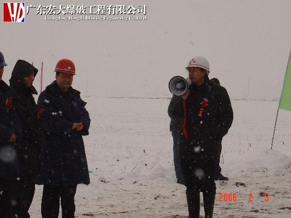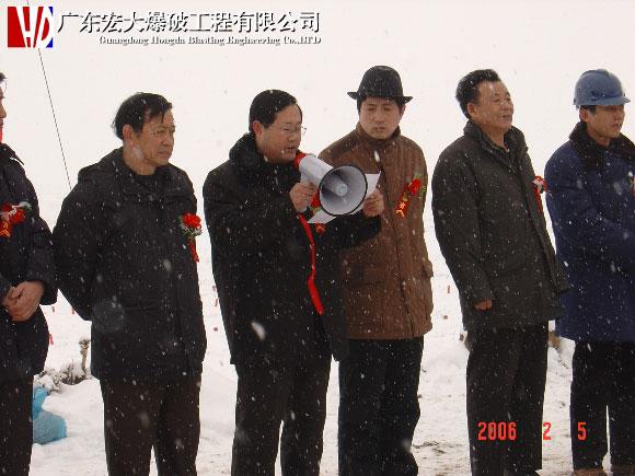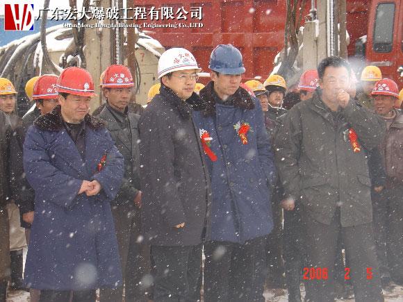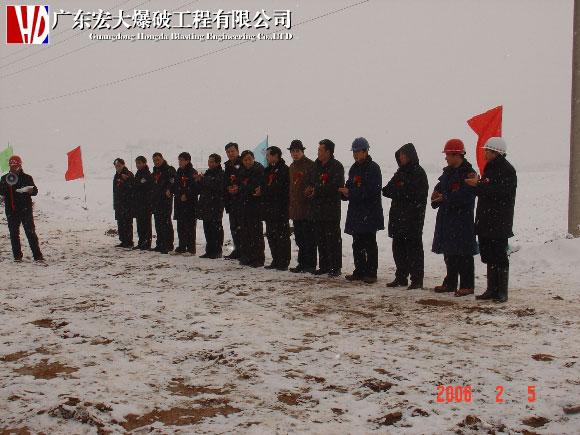 河南舞鋼項(xiàng)目于2006年2月5日舉行開(kāi)工典禮,參加開(kāi)工典禮的領(lǐng)導(dǎo)有中加鋼鐵公司韓保軍總經(jīng)理,米澤宇副總經(jīng)理,中加集團(tuán)協(xié)調(diào)組張俊杰組長(zhǎng),中加礦業(yè)發(fā)展有限公司姚念章總經(jīng)理,程國(guó)利常務(wù)副總經(jīng)理,張朝東副總經(jīng)理,單九成總經(jīng)理助理,第一選礦場(chǎng)總工程師張松齡,副廠長(zhǎng)周鴻喜,舞鋼公安局治安三隊(duì)翟隊(duì)長(zhǎng),舞鋼公安局廟街鄉(xiāng)派出所張東所長(zhǎng),舞鋼市民爆公司楊沛松經(jīng)理,我司鄭炳旭總經(jīng)理,肖文雄經(jīng)理,李戰(zhàn)軍博士。