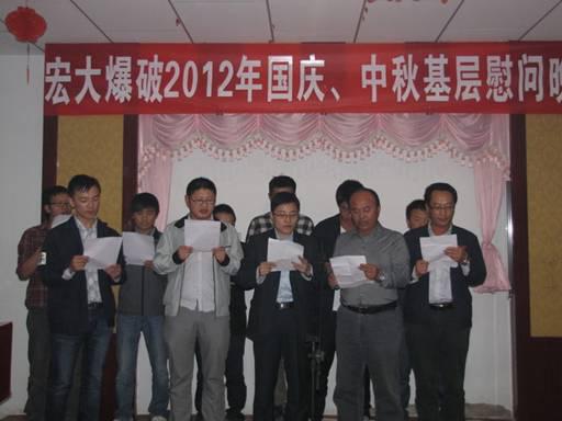 月到中秋分外明,又是一年團(tuán)圓時(shí)。宏大公司繼續(xù)傳承每年中秋節(jié)前對(duì)各分子公司、項(xiàng)目部、地面站一線人員進(jìn)行節(jié)日慰問的優(yōu)良傳統(tǒng),在鄭炳旭董事長(zhǎng)的領(lǐng)導(dǎo)下,成立了中秋慰問領(lǐng)導(dǎo)小組,以黨委書記宗粵琦為組長(zhǎng),執(zhí)行總經(jīng)理方健寧、高級(jí)顧問李應(yīng)儒、副總經(jīng)理李萍豐、鄭永偉、梁發(fā)、總經(jīng)理助理王麗娟、工程事業(yè)部副總經(jīng)理肖文雄、民爆事業(yè)部副總經(jīng)理曹潔明等為副組長(zhǎng),黨群文化中心、人力資源中心、行政中心、工程事業(yè)部、民爆事業(yè)部相關(guān)人員、2011年度先進(jìn)個(gè)人代表等為組員,共分成 4個(gè)慰問小組,于9月10日-26日到各分子公司、項(xiàng)目部、地面站開展慰問活動(dòng)。中秋慰問領(lǐng)導(dǎo)小組認(rèn)真部署、精心籌備,各慰問單位積極響應(yīng)、鼎力配合,使此次慰問活動(dòng)進(jìn)行得非常順利,取得了很好的反響,達(dá)到了預(yù)期目的。
