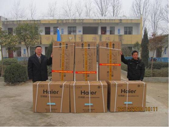 舞鋼項(xiàng)目常務(wù)副經(jīng)理、幼兒園校長(zhǎng)與捐贈(zèng)的空調(diào)
