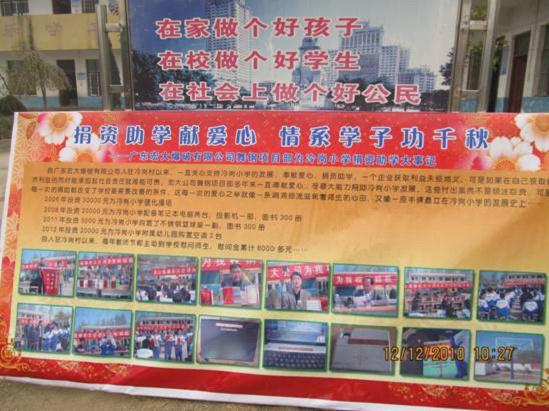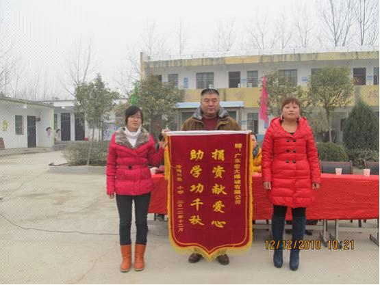 2012年12月12日上午10時(shí),河南省舞鋼市天氣寒冷、寒風(fēng)刺骨,但舞鋼市廟街鄉(xiāng)冷崗小學(xué)校門口卻充滿著陣陣春潮和暖意,廣東宏大舞鋼愛心基金會(huì)向冷崗中心幼兒園捐贈(zèng)儀式正在冷崗小學(xué)舉行。