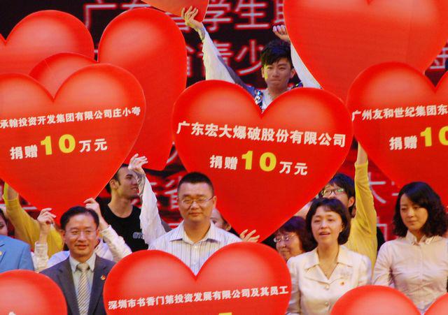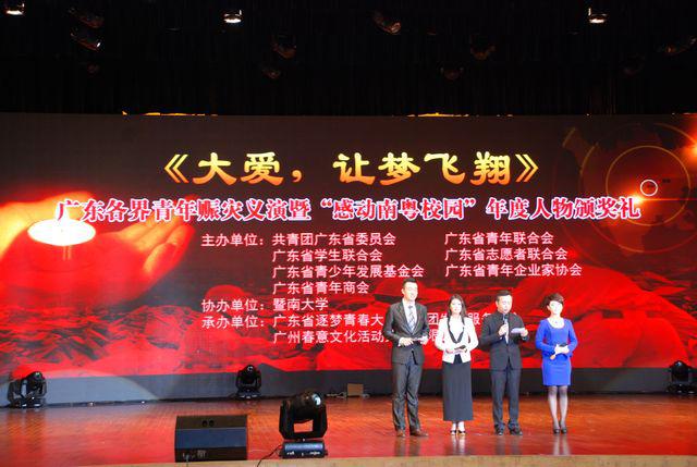 2013年4月25日晚8時(shí),共青團(tuán)廣東省委員會、廣東省青年聯(lián)合會在暨南大學(xué)大禮堂舉行了“大愛,讓夢飛翔”廣東各界青年賑災(zāi)義演暨“感動南粵校園”年度人物頒獎禮。省第十三次團(tuán)代會全體代表,廣東省青年聯(lián)合會、廣東省青年企業(yè)家協(xié)會、廣東省青年商會、廣東省青年現(xiàn)代農(nóng)業(yè)發(fā)展促進(jìn)會、廣東省青少年發(fā)展基金會等青年團(tuán)體代表和大學(xué)生代表共1700多人參加了義演活動。