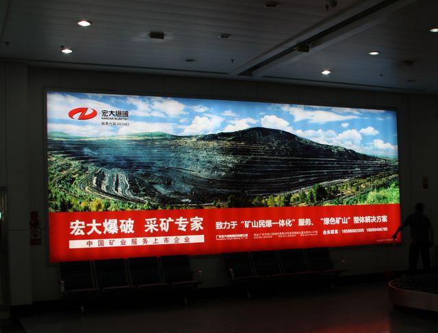 2013年5月29日,宏大爆破首幅巨型戶外廣告在烏魯木齊地窩堡國(guó)際機(jī)場(chǎng)航站樓正式上畫(huà)。畫(huà)面位于到達(dá)廳T2及T3,面積分別為22m2和7 m2,主要面對(duì)受眾覆蓋國(guó)內(nèi)國(guó)際旅客。在宏大爆破上市一周年之際,作為國(guó)內(nèi)礦業(yè)服務(wù)第一家上市企業(yè),以“宏大爆破、采礦專(zhuān)家”亮相亞心地區(qū)——新疆,將致力于“礦山民爆一體化”服務(wù)模式、 “綠色礦山”整體解決方案推向西北及亞洲地區(qū),為迎接6月中旬的新疆礦業(yè)博覽會(huì)開(kāi)展針對(duì)性宣傳,也為宏大爆破在新疆市場(chǎng)開(kāi)發(fā)、提升公司品牌形象進(jìn)行媒體傳播!