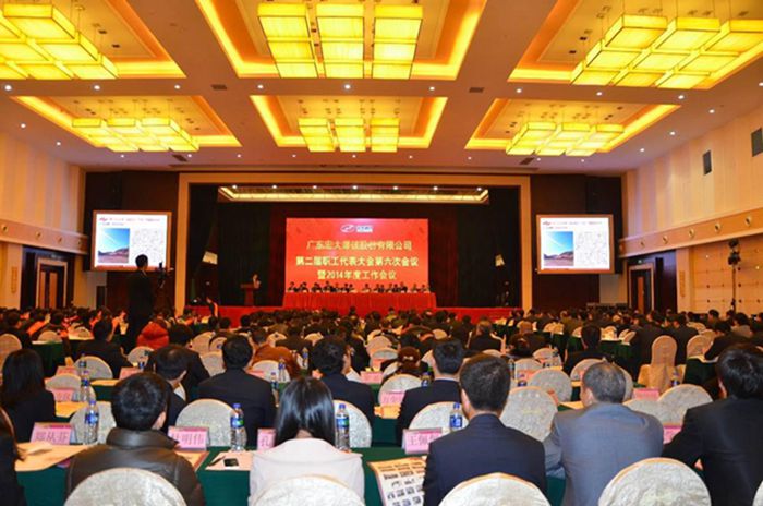 為總結(jié)2013年工作,表彰先進(jìn),進(jìn)一步弘揚(yáng)企業(yè)精神,增強(qiáng)員工自豪感和凝聚力,并做好2014年各項(xiàng)工作的部署,1月16日至17日,公司在清遠(yuǎn)清新花園酒店召開(kāi)了第二屆職工代表大會(huì)第六次會(huì)議暨2014年度工作會(huì)議。本次工作會(huì)議由黨委副書(shū)記宗粵琦(1月16日)、新任執(zhí)行總經(jīng)理梁發(fā)(1月17日)分別主持。公司領(lǐng)導(dǎo)、本部員工、各事業(yè)部、各分子公司代表等400余人參加了會(huì)議。會(huì)議主要報(bào)告了公司2013年經(jīng)營(yíng)情況、2014年工作目標(biāo)與任務(wù)、2013年優(yōu)秀表彰,并分別簽訂了《經(jīng)營(yíng)管理目標(biāo)責(zé)任書(shū)》、《黨建和黨風(fēng)廉政建設(shè)責(zé)任書(shū)》以及《安全生產(chǎn)責(zé)任書(shū)》。