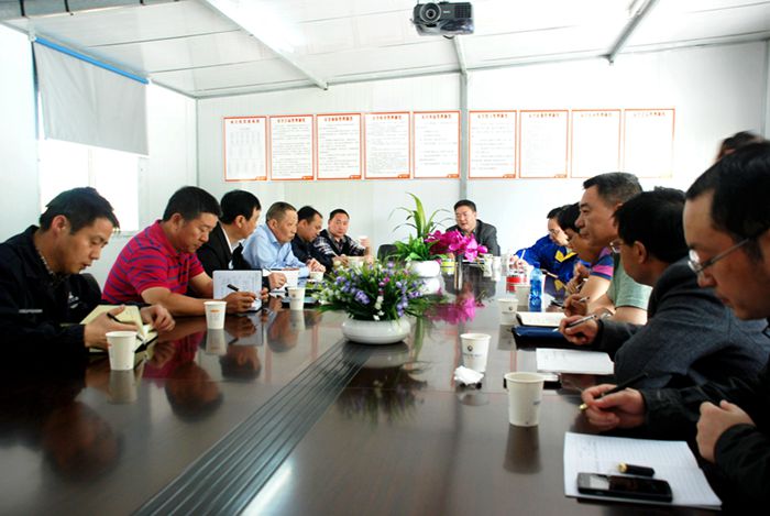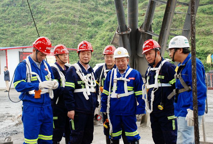 上午9時(shí)許,劉大師一行來(lái)到主、副井施工現(xiàn)場(chǎng),聽(tīng)了項(xiàng)目部的相關(guān)情況匯報(bào)后,即換上工作服,乘坐吊桶,下到副立井當(dāng)前施工的工作面562米深處檢查。劉大師認(rèn)真勘察了工作面的地質(zhì)、水文情況,檢查了井壁質(zhì)量情況。檢查結(jié)束后,大家來(lái)到漣邵建工集團(tuán)李家灣項(xiàng)目部會(huì)議室召開會(huì)議。在會(huì)上,劉大師對(duì)李家灣錳礦項(xiàng)目的基建工作予以肯定,對(duì)主、副立井施工150米的月進(jìn)尺表示贊賞。他說(shuō):“本項(xiàng)目在施工組織上從業(yè)主到施工單位都不錯(cuò),管理到位,力量雄厚,在地質(zhì)較復(fù)雜的條件下,國(guó)內(nèi)能達(dá)到如此進(jìn)度的都不多;針對(duì)云貴川地質(zhì)構(gòu)造特點(diǎn),地形復(fù)雜,在施工過(guò)程中要注意水文資料的收集?!弊詈螅?/span>劉大師對(duì)項(xiàng)目下步的采礦工藝提出了指導(dǎo)意見(jiàn)。