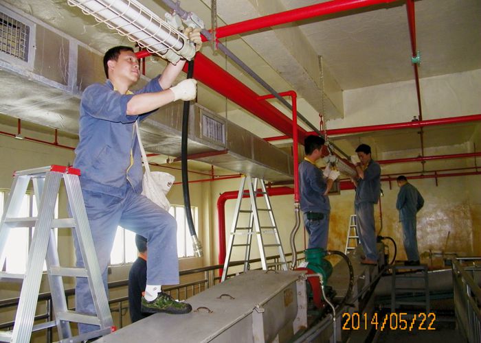 為切實(shí)做好整改工作,5月22日起韶關(guān)分公司一車間生產(chǎn)線停止生產(chǎn),三車間電工班長(zhǎng)組織全班職工對(duì)一車間生產(chǎn)線的電器防爆接線進(jìn)行整改。他們扛著梯子、背著工具、手拿套管,穿梭于工房間,一會(huì)兒爬上,一會(huì)兒跳下,把不符合行業(yè)要求的電機(jī)、電扇、照明接線拆卸下來(lái),