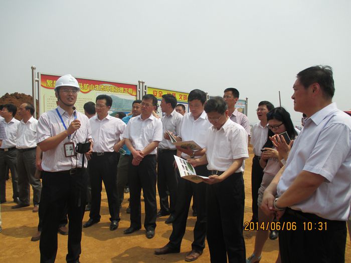 6月6日上午,安微省委宣傳部副部長、省文明辦主任、省“三線三邊”環(huán)境治理辦公室主任賀懋燮率省文明辦有關(guān)處室、國土廳等,及安徽省其他十余個市縣委宣傳部、國土局、環(huán)保局、文明辦等相關(guān)負責人一行百余人,蒞臨繁昌縣峨山鎮(zhèn)廣東宏大爆破股份有限公司控股公司:宏大國源(蕪湖)資源環(huán)境治理有限公司(以下簡稱:宏大國源公司)峨山頭廢棄礦山地質(zhì)災害治理工程現(xiàn)場觀摩指導工作。宏大國源公司總經(jīng)理王鐵、副總經(jīng)理楊家富陪同視察。隨行的還有人民網(wǎng)、新華社及安徽日報、安徽廣播電視臺、新安晚報、安徽商報、市場星報、中安在線、安徽文明網(wǎng)、文明風雜志等媒體記者一行。