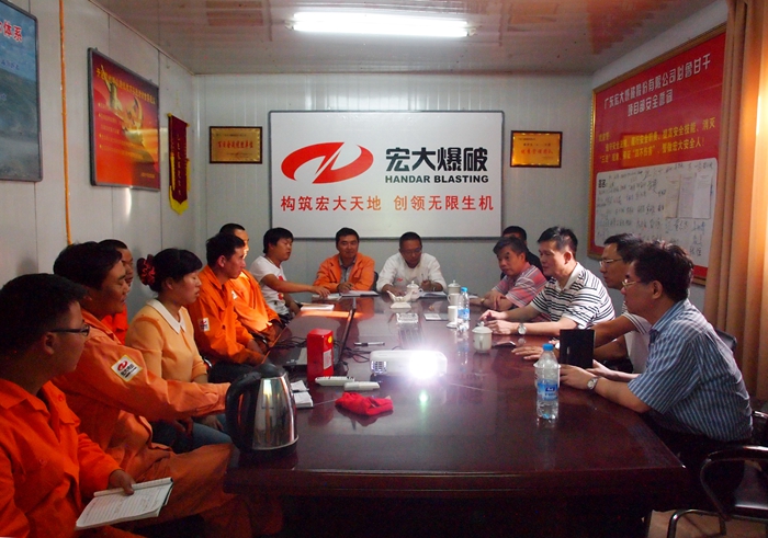 7月19日下午,廣東省廣業(yè)資產(chǎn)經(jīng)營有限公司副總經(jīng)理王健、工會副主席何繼長等一行領(lǐng)導(dǎo),在廣東宏大爆破股份有限公司黨委副書記郜洪青的陪同下到我公司必魯甘干項目部檢查工作。