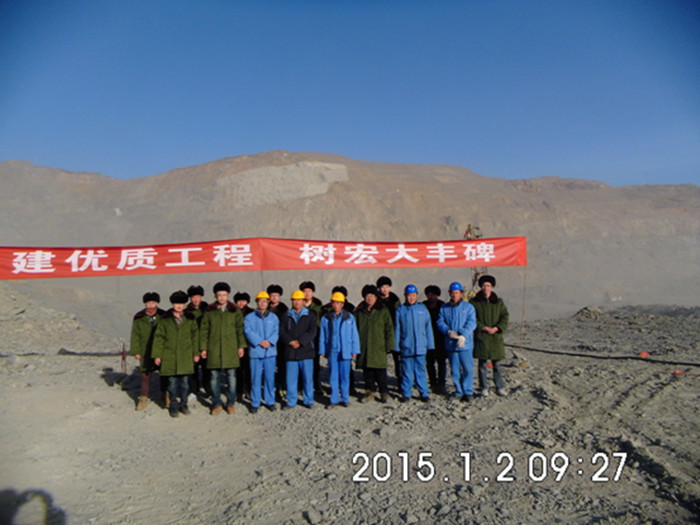 2015年1月2日,廣東宏大爆破股有限公司(以下簡稱:宏大爆破)承建的太原鋼鐵(集團)有限公司礦業(yè)分公司尖山鐵礦邊坡靠幫部位穿孔爆破工程和膠帶排巖半移動破碎站及P05移置膠帶工程迎來了如期開工的日子。1494工作平臺上陽光明媚、彩旗飄揚、禮炮齊鳴,上午9時整太原鋼鐵(集團)有限公司礦業(yè)分公司尖山鐵礦工程管理科科長常友平,尖山鐵礦外委項目部常務副經理趙志遠及尖山鐵礦監(jiān)理單位、太鋼尖山鐵礦項目部常務副經理周延彬等領導以及施工隊伍全體同事參加了工開儀式。