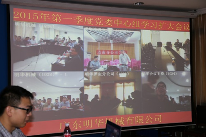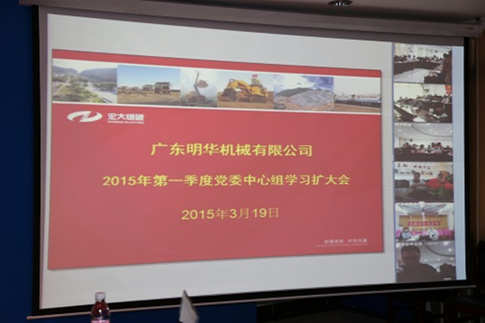 3月19日下午,廣東宏大爆破股份有限公司全資子公司:廣東明華機械有限公司(以下簡稱:明華公司)在公司本部會議室召開了2015年第一季度黨委中心組學習擴大會議。公司黨委委員、班子成員、紀委委員、本部正副部長參加了會議,各下屬公司中層及以上領導干部通過視頻參會。