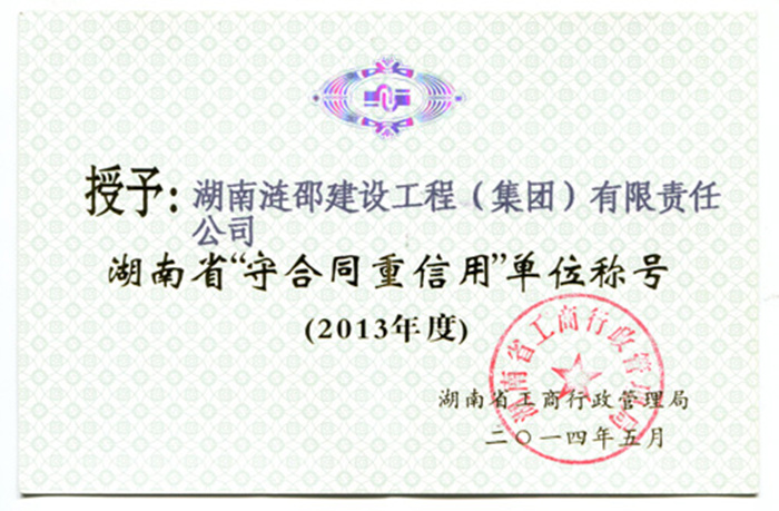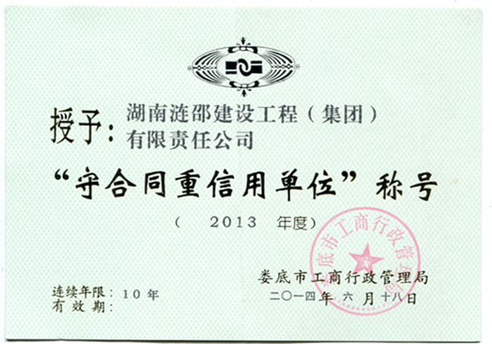 同時,公司還獲得了婁底市工商行政管理局與湖南省工商行政管理局頒發(fā)的“守合同重信用單位”稱號以及“湖南誠信百強品牌”榮譽證書。