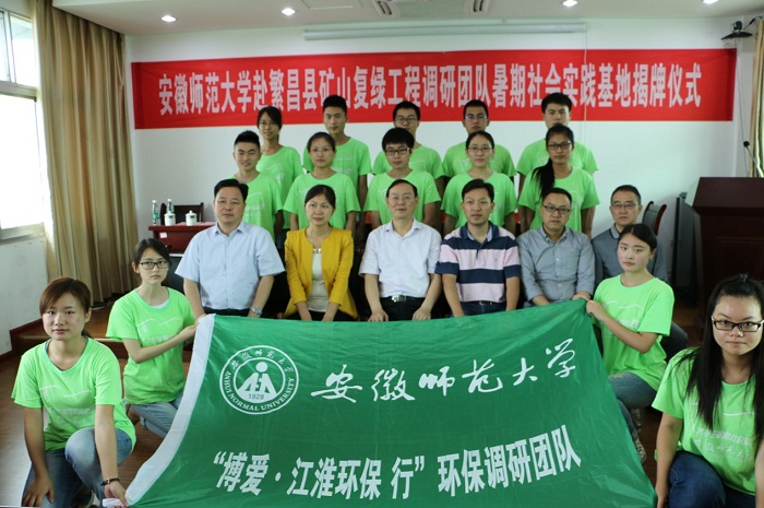 深度合作,創(chuàng)建共贏模式。在揭牌儀式上,副縣長馬楨烈致辭,他介紹了“美麗繁昌,美好家園”環(huán)境專項(xiàng)整治項(xiàng)目,希望以此活動(dòng)為契機(jī)搭建合作平臺,為政府決策提供專業(yè)意見。楊如意副院長對繁昌縣縣政府、宏大國源公司給予安師大暑期社會實(shí)踐的支持表示感謝,并提出希望在繁昌縣建設(shè)學(xué)生專業(yè)實(shí)習(xí)、創(chuàng)新實(shí)踐示范基地,從而實(shí)現(xiàn)雙方共贏。吳滌塵董事長,首先歡迎同學(xué)們的到來,表示宏大國源將全力做好服務(wù)工作,同時(shí),他也提醒同學(xué)們要注意實(shí)踐期間的安全。隨后,滕德寶局長與楊友誼副書記一起為“博愛,江淮環(huán)保行”環(huán)保調(diào)研團(tuán)隊(duì)暑期社會實(shí)踐基地揭牌。
