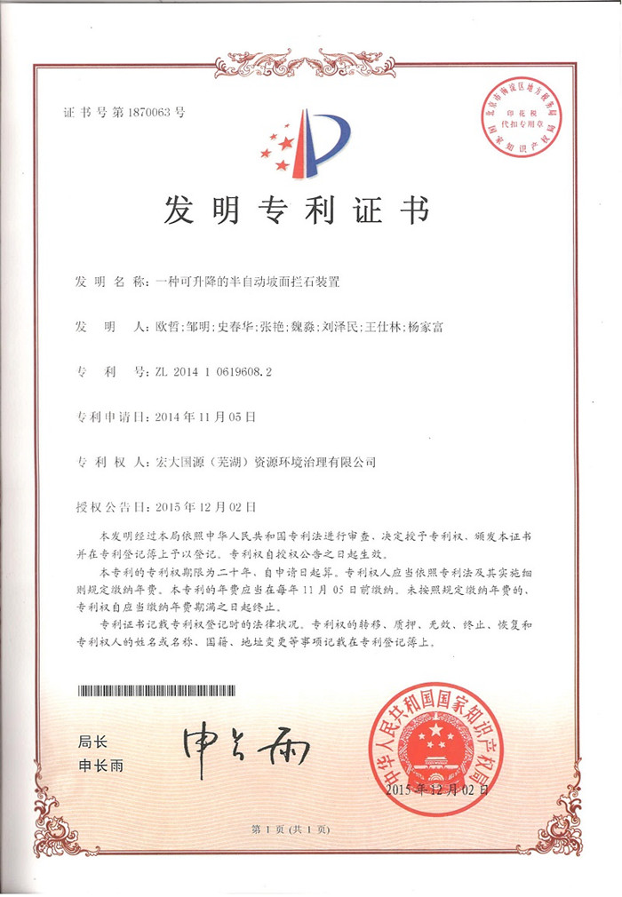 獲得實(shí)用新型專利。其中,發(fā)明專利在不增加額外費(fèi)用的情況下,從申請(qǐng)到拿證僅用了1年的時(shí)間,較常規(guī)時(shí)間提前了1~2年,這反映了宏大國(guó)源的技術(shù)創(chuàng)新已經(jīng)在同行業(yè)達(dá)到了領(lǐng)先水平。