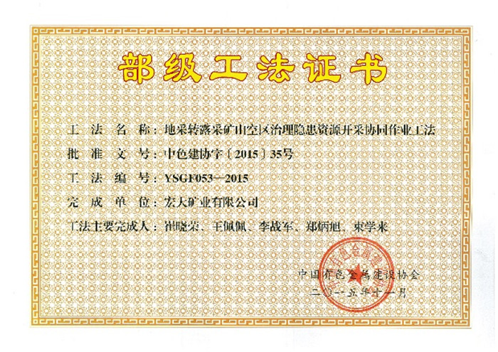 此項(xiàng)成果的獲得是對(duì)我公司先進(jìn)施工經(jīng)驗(yàn)的肯定和鼓勵(lì)。宏大礦業(yè)歷來重視工法研究、開發(fā)、總結(jié)和推廣應(yīng)用工作,注重以工法開發(fā)增強(qiáng)企業(yè)科技創(chuàng)新能力,鼓勵(lì)員工積極采用新技術(shù)、新工藝、新材料和新設(shè)備,不斷提高施工技術(shù)水平和工程質(zhì)量。
