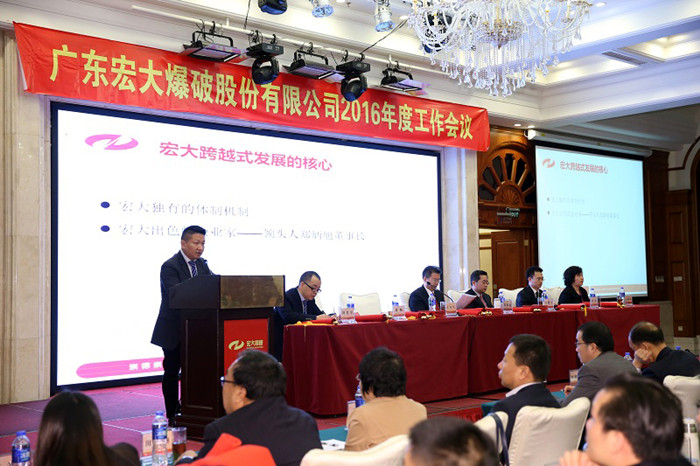 2016年1月13日,廣東宏大爆破股份有限公司2016年度工作會議在廣州花都召開。會議主要對公司2015年度工作情況進行了全面總結(jié)并對2016年度工作進行了整體部署。會議由公司常務(wù)副總經(jīng)理王永慶主持,公司領(lǐng)導(dǎo)班子、各下屬單位領(lǐng)導(dǎo)、總部全體員工以及2015年度先進集體代表、先進個人等兩百余人參加了會議。