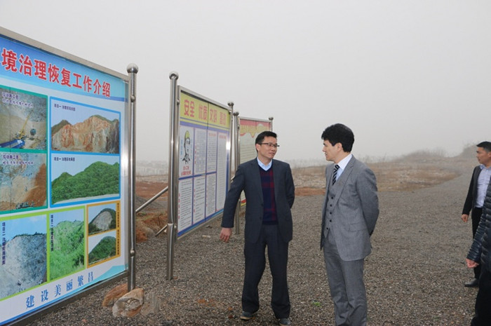 在會后,在宏大國源總經(jīng)理張光權(quán)的陪同下,黃副總一行對宏大國源峨山頭和西山聯(lián)合兩個廢棄(關(guān)閉)礦山資源環(huán)境治理項目進行了視察,并在視察中詳細了解了項目的建設(shè)情況、治理效果和產(chǎn)生的效益。