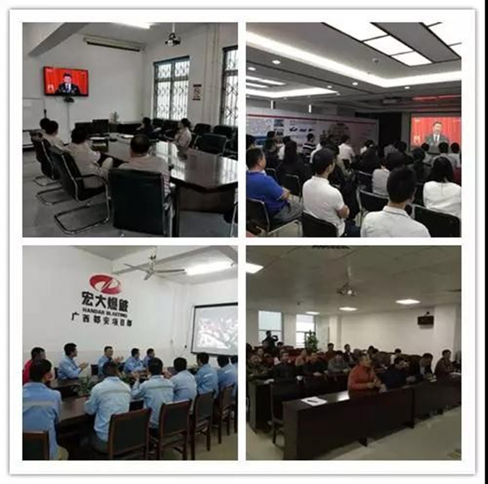 ↑各子公司黨員領(lǐng)導(dǎo)干部、各基層員工通過電視、網(wǎng)絡(luò)收看十九大開幕大會盛況。(圖一:鞍礦爆破 圖二、圖三:宏大有限 圖四:漣邵建工)
