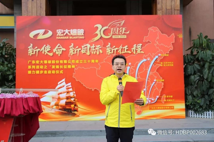 1月31日下午,為紀(jì)念公司成立三十周年,進(jìn)一步激發(fā)廣大員工的健身積極性,宏大公司于廣州白云山下舉辦了成立三十周年系列活動(dòng)啟動(dòng)儀式之“發(fā)揚(yáng)長(zhǎng)征精神”接力健步走活動(dòng)。參加活動(dòng)的有宏大公司總部領(lǐng)導(dǎo)、總部全體員工、下屬企業(yè)參加宏大公司年度工作會(huì)議的領(lǐng)導(dǎo)班子成員及總部全體員工,約100人。