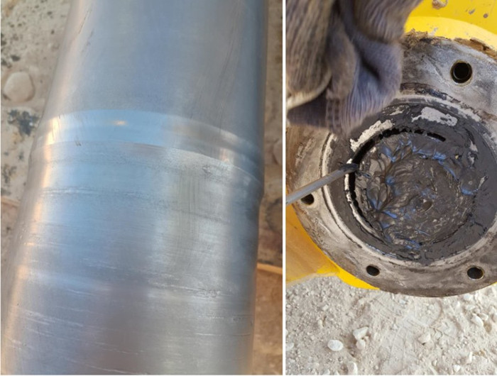 沙塵暴肆虐,日本小松集團(tuán)最新型的PC1250SP-8挖機(jī)經(jīng)受不住風(fēng)沙的考驗(yàn),挖機(jī)的軸與套之間被細(xì)沙磨損嚴(yán)重,軸更換頻繁,維保成本居高不下。經(jīng)中東小松公司和日本小松公司本部多番嘗試解決,仍毫無頭緒。宏大巴基斯坦項(xiàng)目技術(shù)團(tuán)隊(duì)經(jīng)研究,提出了解決辦法:骨架油封表面纏上鋁片和細(xì)吊帶,減少進(jìn)沙面積。但此方案遭到了小松方面的反對,因?yàn)榫S保手冊上沒有此說法。為測試效果,項(xiàng)目技術(shù)團(tuán)隊(duì)試驗(yàn)了一個(gè)月,發(fā)現(xiàn)磨損情況大大改善,問題迎刃而解。于是,礦區(qū)各兄弟單位紛紛借鑒。挖機(jī)維護(hù)成本大大降低,業(yè)主喜出望外;日本小松方面也對此刮目相看,并表示會(huì)根據(jù)現(xiàn)場反應(yīng)的情況對今后新產(chǎn)品重新改進(jìn)浮動(dòng)軸承設(shè)計(jì)。