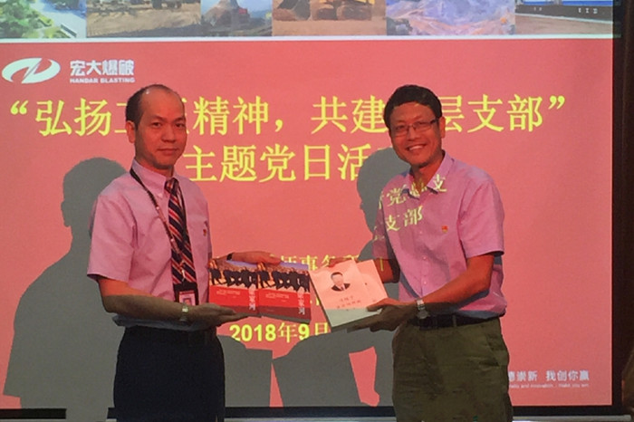 在讀書分享會環(huán)節(jié),宏大公司紀委書記何偉平同志推薦并分享了《梁家河》、《掌控》這兩本書,通過這兩本書的讀后感表達了過去知青歲月與現(xiàn)代繁忙都市的精力把控對今天在場所有黨員的深刻啟示,隨后國信信揚黨總支為宏大公司專門制作并贈送了“黨建共建單位”的牌匾。