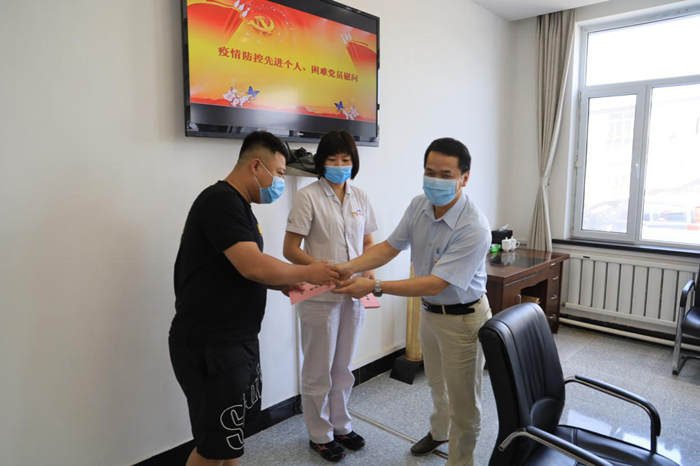 廣業(yè)集團但昭學(xué)(右)慰問防疫先進個人和困難黨員