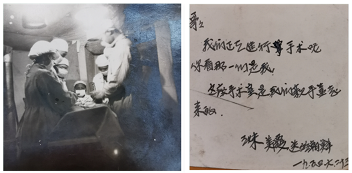 抗美援朝戰(zhàn)爭(zhēng)期間何美霞(左一)在為傷員做手術(shù)