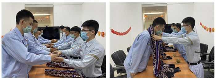 徒弟給業(yè)務(wù)導師敬茶 導師為徒弟贈上當?shù)貍鹘y(tǒng)禮物Ajrak