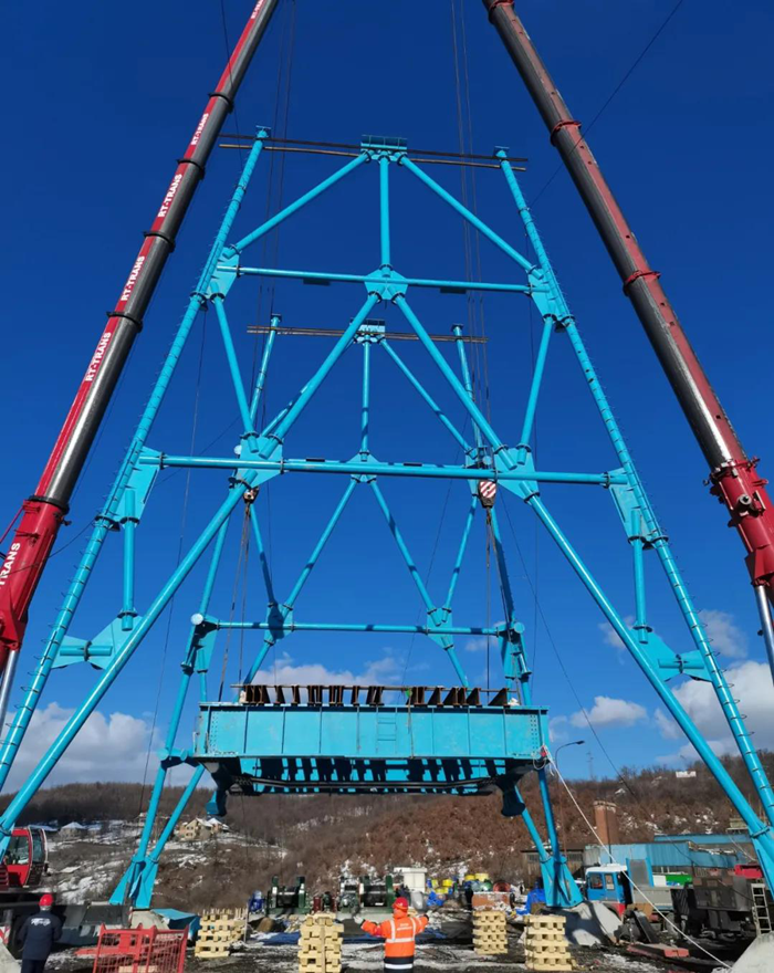 近期,在兩臺(tái)重型吊車(chē)懸吊下,塞爾維亞最大、最重的Ⅵ型鑿井井架從地面緩緩升起,經(jīng)過(guò)近6個(gè)小時(shí)的組對(duì)吊裝和空中合攏,主體構(gòu)件精準(zhǔn)就位,吊裝順利完成。