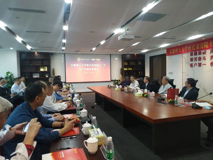4月8日安徽理工大學(xué)校長袁亮院士、原安徽大學(xué)校長程樺教授、學(xué)校黨委常委王先江主任等一行5人蒞臨廣東宏大爆破股份有限公司與廣東校友座談交流,廣東省委辦公廳原巡視員、廣東省校友會張光發(fā)會長,宏大爆破董事長鄭炳旭與廣東校友及代表共計50余人參加此次座談。